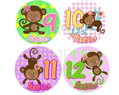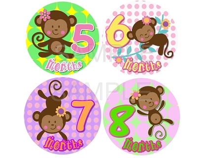 Amanda - Cutest Monkey Girl Monthly Photo StickersAww… so cute! What a beautiful way to document your baby’s monthly growth in the first year of life!  BabySmiles monthly photo stickers look absolutely adorable on babies for picture taking.  You will love this new, fun way to capture your baby’s milestones.  These stickers will make your photos truly special and make your memories last a lifetime!
