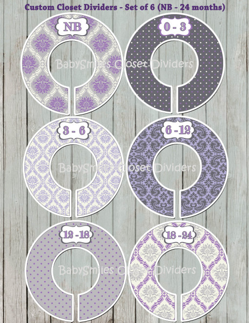 Custom Closet Dividers – Newborn to 24 Months – Beautiful Purple Grey Damask 111
