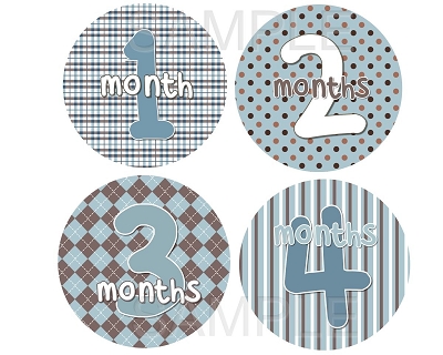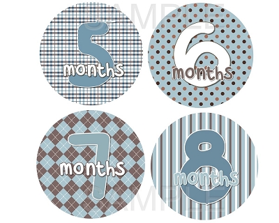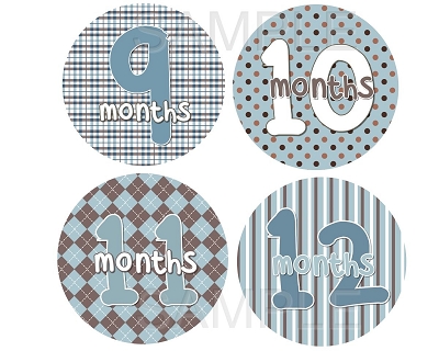 Jadon - Baby Blue and Brown Patterns Monthly Photo StickersAww… so cute! What a beautiful way to document your baby’s monthly growth in the first year of life!  BabySmiles monthly photo stickers look absolutely adorable on babies for picture taking.  You will love this new, fun way to capture your baby’s milestones.  These stickers will make your photos truly special and make your memories last a lifetime!