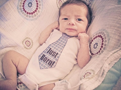 All you have to do is cut the tie out – super easy! Next, peel and place the sticker on your baby’s bodysuit or t-shirt on each monthly birthday. Grab your camera and snap some beautiful pictures! You can remove the sticker for scrapbooking after each photo session.
