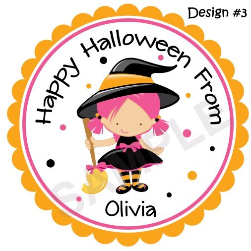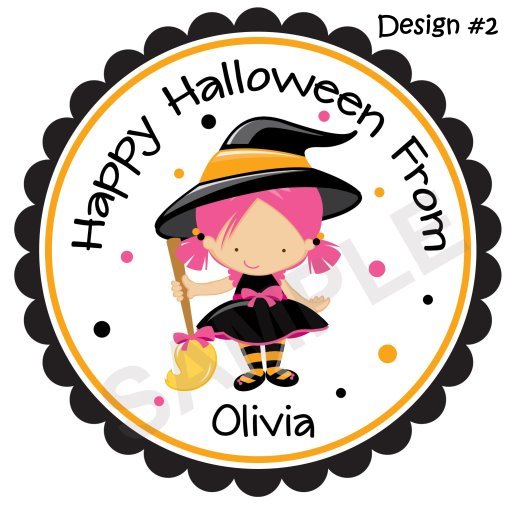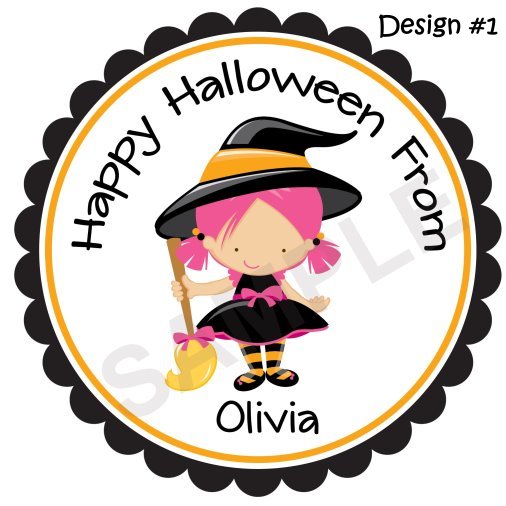Little Cute Witch Personalized Stickers – Halloween Stickers, Favor Stickers, Halloween, Holiday, Trick or Treat