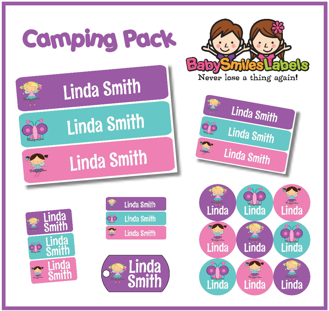 Looking for durable labels for your kids’ summer camp? Our Camp Pack includes a variety of labels to keep your kids’ camp gear organized whether for day or overnight camps. Perfect for labeling clothes, footwear, swim gear, toiletries, backpacks, water bottles and anything you want to return home!