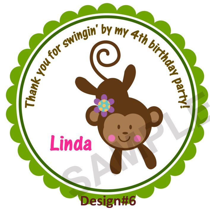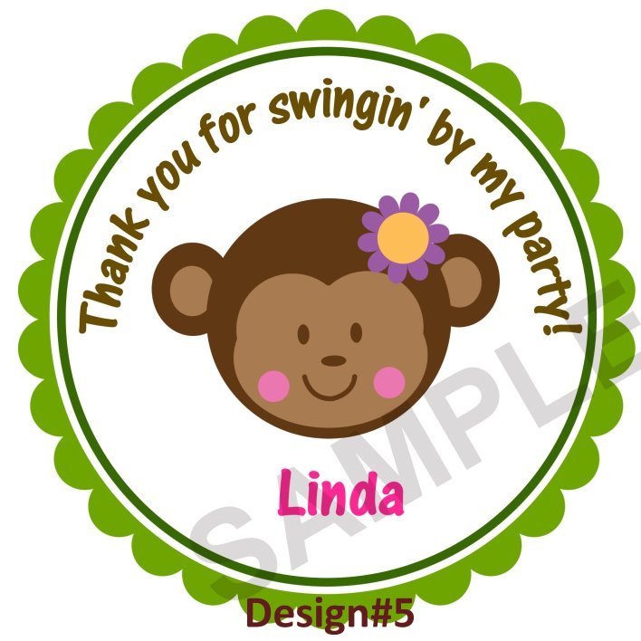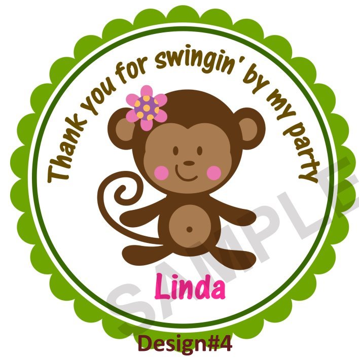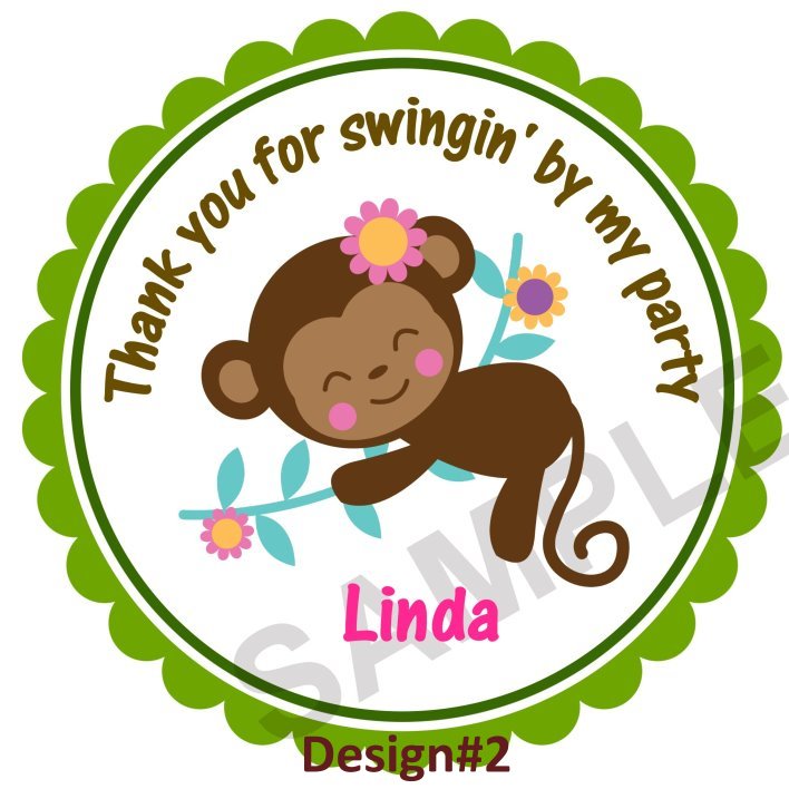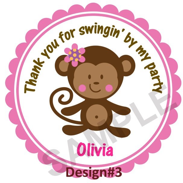 Cute Monkey Girl Personalized StickersCute Monkey Girl Personalized Stickers♥ Unlimited use with these cute and unique PERSONALIZED stickers!  Perfect to use for parties and to match your party theme! These stickers can be used on everything!  Stick them on party favors, gifts, goodie bags, thank you notes, envelope seals, address labels, cards, wrapped baked treats, and more! The possibilities are endless!