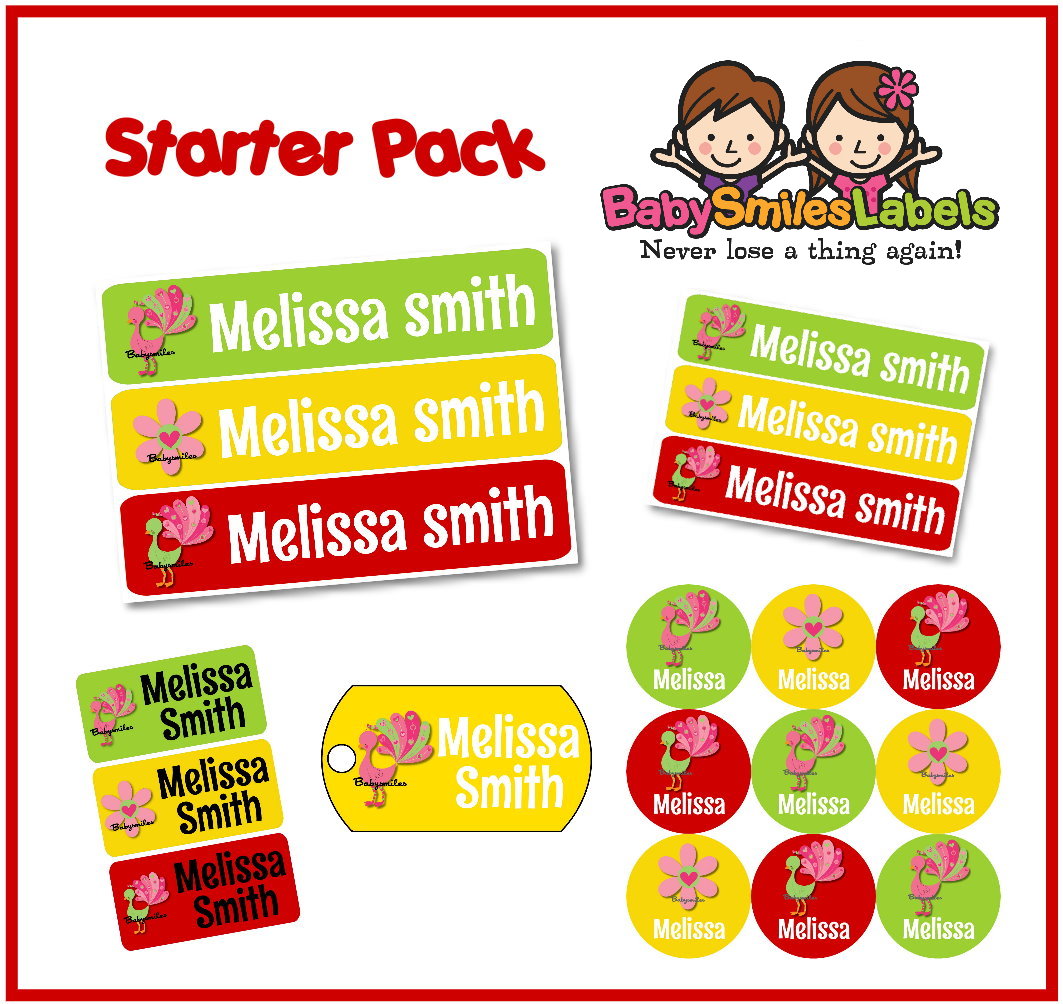 – 21 Standard Waterproof Labels (2.5″ x 0.6″):  One of BabySmiles’ most popular labels, these standard waterproof labels are ideal for labeling lunchboxes, drink bottles, books, sports equipment, toys, and other items sent to daycare, camp and school.