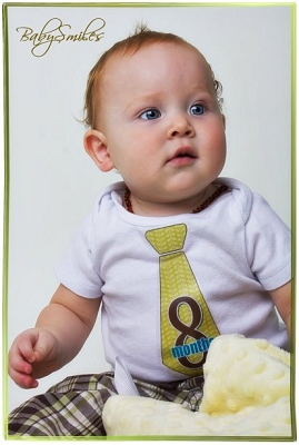 All you have to do is cut the tie out – super easy!  Next, peel and place the sticker on your baby’s bodysuit or t-shirt on each monthly birthday.  Grab your camera and snap some beautiful pictures!  You can remove the sticker for scrapbooking after each photo session.