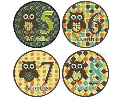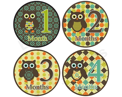 Tanner - Woodland Owls Monthly Photo StickersAww… so cute! What a beautiful way to document your baby’s monthly growth in the first year of life!  BabySmiles monthly photo stickers look absolutely adorable on babies for picture taking.  You will love this new, fun way to capture your baby’s milestones.  These stickers will make your photos truly special and make your memories last a lifetime!