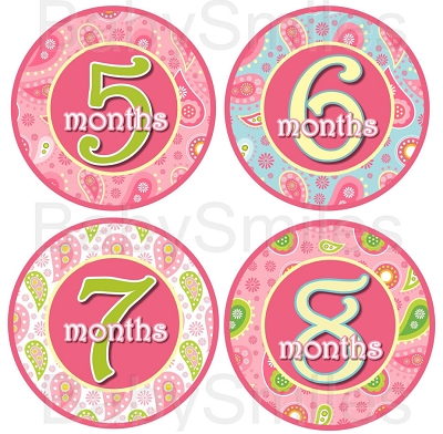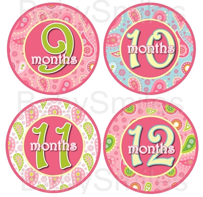 Zoe - Beautiful Paisley Monthly Photo StickersAww… so cute! What a beautiful way to document your baby’s monthly growth in the first year of life!  BabySmiles monthly photo stickers look absolutely adorable on babies for picture taking.  You will love this new, fun way to capture your baby’s milestones.  These stickers will make your photos truly special and make your memories last a lifetime!